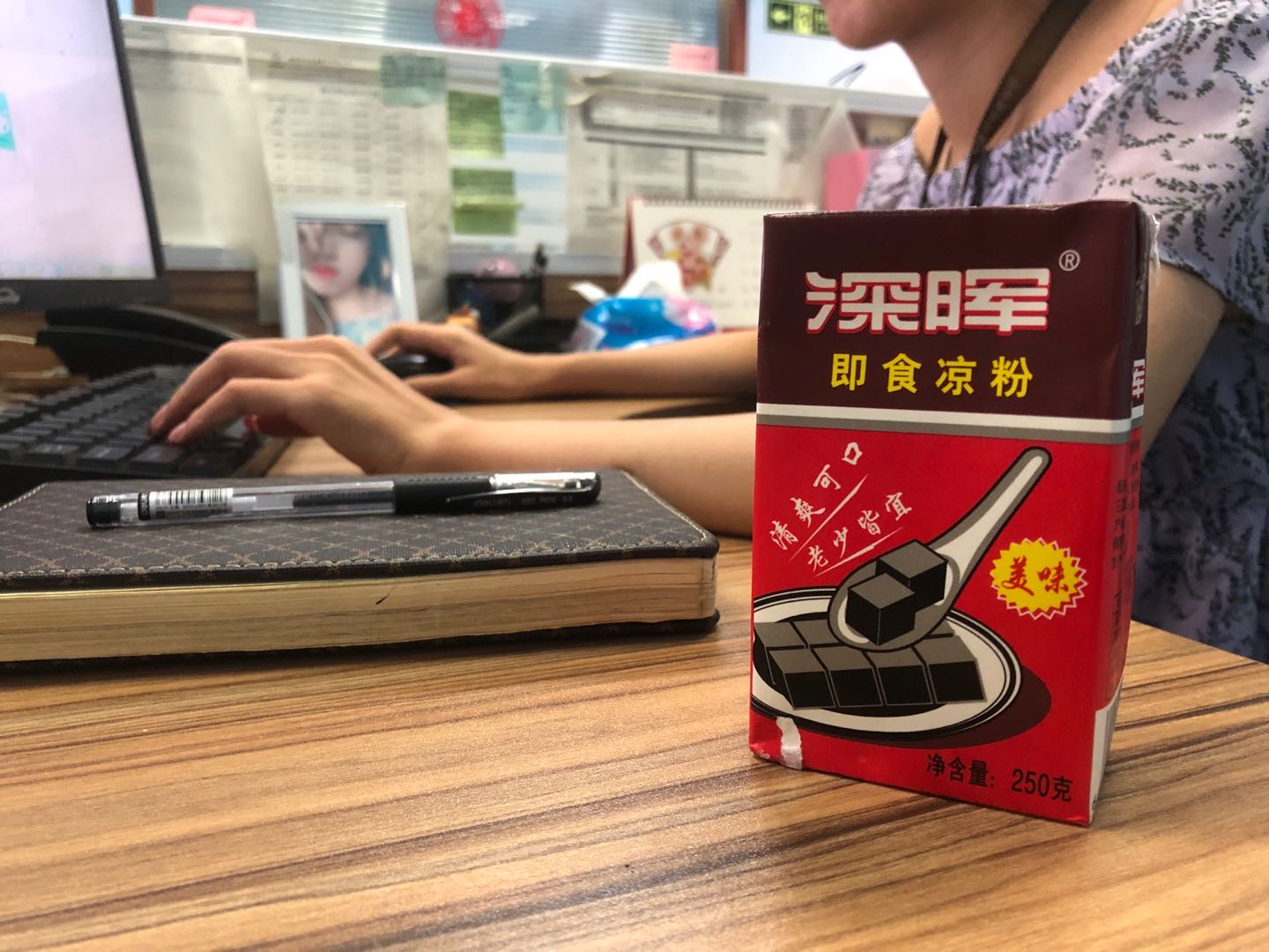公司在高溫預警發布的同時,就安排了財務采購了大量的涼茶和即食涼粉,為漫長的夏日做好準備。涼茶到達公司之際,第一時間被放入了冰箱。原本放著零食的冰箱在瞬間被填補的滿滿當當,一杯杯涼茶和即食涼粉在這里等待著每一位員工的認領。